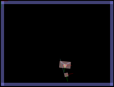 And run that up. The insect should be fluttering nicely around the place. You can run with ShowDebug = true in the [Physics] section, and can check how the weight object is interacting with the insect object.